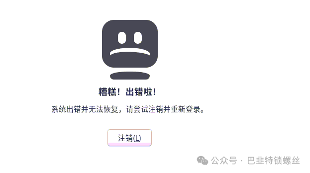 3、连接后提示:系统出错并无法恢复,请尝试注销。