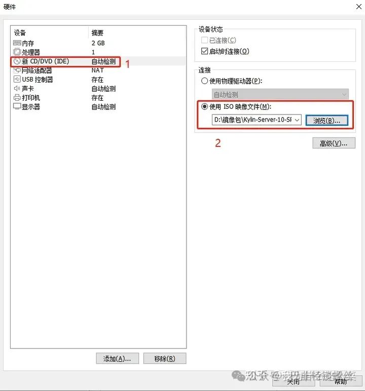 设置iso镜像文件路径,根据自己环境进行选择,都完成后,点击【关闭】