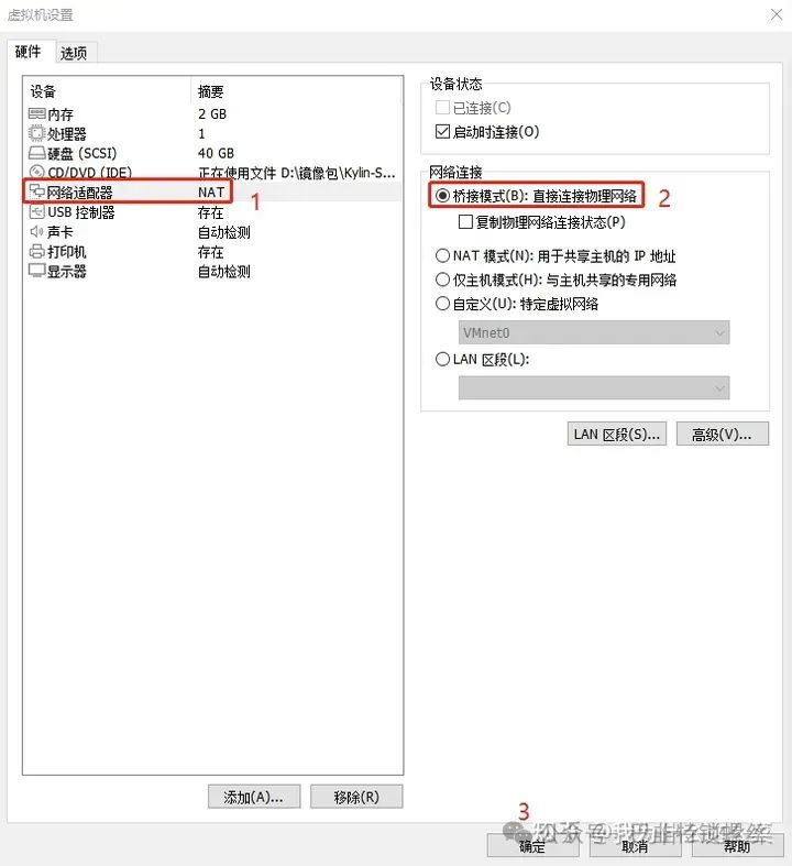 设置网络适配器为桥接模式