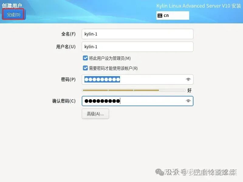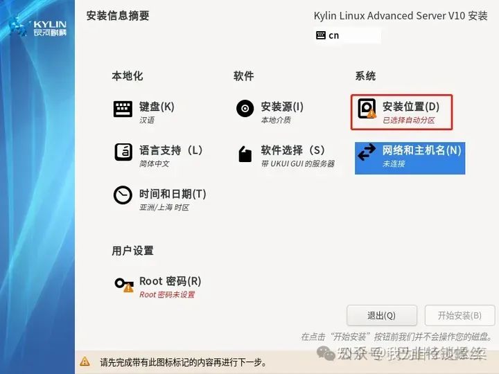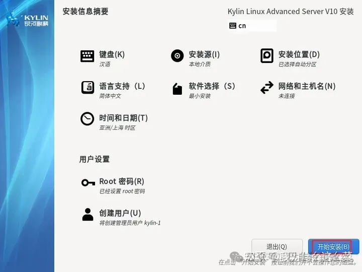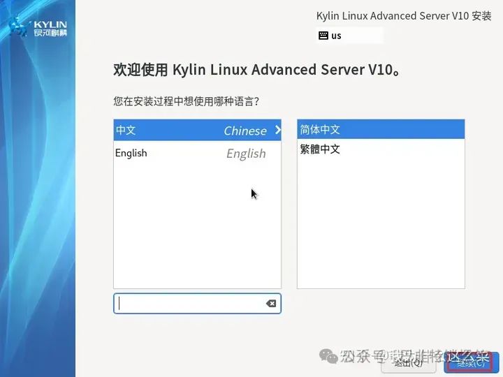 选择【Install Kylin Linux Advanced Server V10】