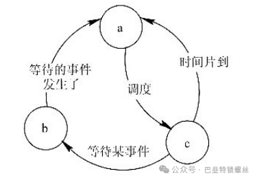 进程具有三种基本状态:运行、就绪和阻塞。处于这三种状态的进程在一定条件下,其状态可以转换。当CPU空闲时,系统将选择处于就绪态的一个进程进入运行态;而当CPU的一个时间片用完时,当前处于运行态的进程就进入了就绪态;进程从运行到阻塞状态通常是由于进程释放CPU,等待系统分配资源或等待某些事件的发生。例如,执行了P操作系统暂时不能满足其对某资源的请求,或等待用户的输入信息等;当进程等待的事件发生时,进程从阻塞到就绪状态,如I/O完成。