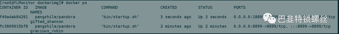 [root@YLMS ~]# docker psCONTAINER ID IMAGE COMMAND CREATED STATUS PORTS NAMESb5d7f4745f45 zhayujie/chatgpt-on-wechat "/entrypoint.sh" 40 hours ago Up 40 hours chatgpt-on-wechat2993a4e55540 yidadaa/chatgpt-next-web "docker-entrypoint.s…" 8 days ago Up 8 days 0.0.0.0:3000->3000/tcp, :::3000->3000/tcp goofy_feynman8b540c459ef8 jumpserver/web:v3.10.4 "/docker-entrypoint.…" 7 weeks ago Up 3 weeks (healthy) 80/tcp, 0.0.0.0:8790->8790/tcp, :::8790->8790/tcp jms_web8a2691cc801a jumpserver/redis:6.2 "docker-entrypoint.s…" 7 weeks ago Up 3 weeks (healthy) 6379/tcp jms_redis89418d78b232 jumpserver/kael:v3.10.4 "./entrypoint.sh" 7 weeks ago Up 3 weeks (healthy) 8083/tcp jms_kaelf5370fe2fe28 jumpserver/lion:v3.10.4 "./entrypoint.sh" 7 weeks ago Up 3 weeks (healthy) 4822/tcp, 8081/tcp jms_lion5bdd5d5e88c0 jumpserver/koko:v3.10.4 "./entrypoint.sh" 7 weeks ago Up 3 weeks (healthy) 0.0.0.0:2222->2222/tcp, :::2222->2222/tcp, 5000/tcp jms_koko08b894ce83bc jumpserver/mariadb:10.6 "docker-entrypoint.s…" 7 weeks ago Up 3 weeks (healthy) 3306/tcp jms_mysqlc26c065c9d45 jumpserver/chen:v3.10.4 "./entrypoint.sh" 7 weeks ago Up 3 weeks (healthy) 8082/tcp jms_chenda7ea72b6129 jumpserver/core-ce:v3.10.4 "./entrypoint.sh sta…" 7 weeks ago Up 3 weeks (healthy) 8080/tcp jms_celery7fbed9e689a2 jumpserver/core-ce:v3.10.4 "./entrypoint.sh sta…" 7 weeks ago Up 3 weeks (healthy) 8080/tcp jms_core061160c6bec9 jumpserver/magnus:v3.10.4 "./entrypoint.sh" 7 weeks ago Up 3 weeks (healthy) 8088/tcp, 14330/tcp, 0.0.0.0:33061-33062->33061-33062/tcp, :::33061-33062->33061-33062/tcp, 54320/tcp, 0.0.0.0:63790->63790/tcp, :::63790->63790/tcp jms_magnusc0a792328b3a influxdb:1.8 "/entrypoint.sh infl…" 9 months ago Up 4 days 0.0.0.0:31531->8086/tcp, :::31531->8086/tcp influxdb1.85fef32af966f mysql:8.0.15 "docker-entrypoint.s…" 9 months ago Up 3 weeks 33060/tcp, 0.0.0.0:18954->3306/tcp, :::18954->3306/tcp mysqlserver112f45563a0c tancloud/hertzbeat:latest "./bin/entrypoint.sh…" 9 months ago Up 3 days 22/tcp, 0.0.0.0:45606->1157/tcp, :::45606->1157/tcp ylcloud