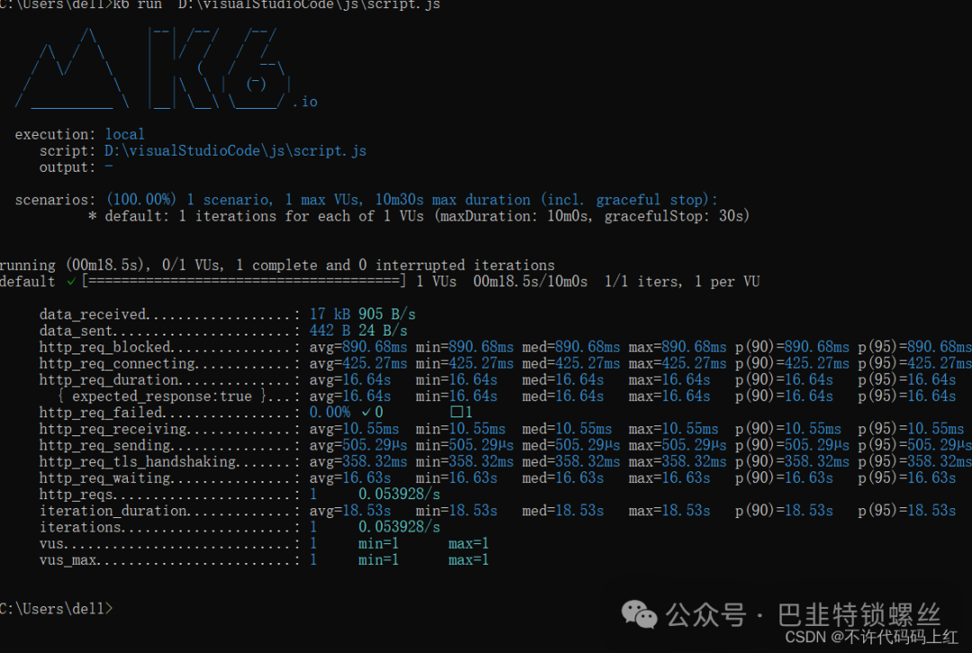🐒到此为止,你基本上就初步了解了什么是k6以及最简单的案例使用。
