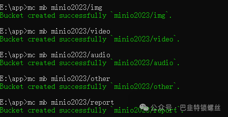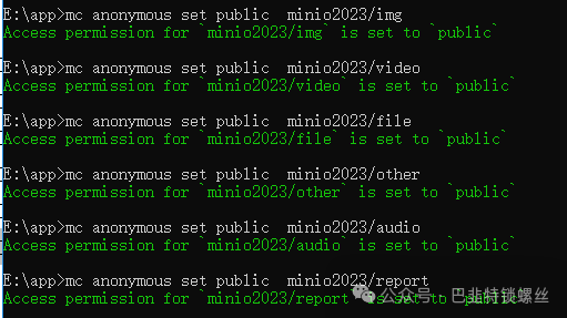 mc anonymous set public minio2023/imgmc anonymous set public minio2023/videomc anonymous set public minio2023/filemc anonymous set public minio2023/othermc anonymous set public minio2023/audiomc anonymous set public minio2023/report