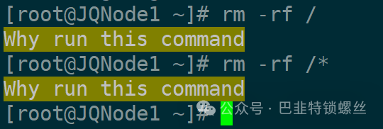 [root@JQNode1 ops]# rm -rf /Why run this command[root@JQNode1 ops]# rm -rf /*Why run this command