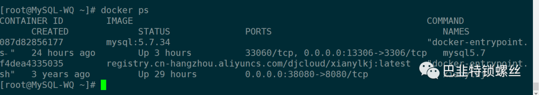 此时使用docker ps看到容器正常运行,即创建成功。