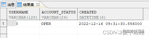-- 通过字典表 dba_users 查看基本信息SELECT username,account_status,created FROM dba_users WHERE username='DM';