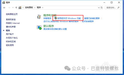 在程序界面,点击“程序和功能”下方的“启用或关闭Windows功能”,打开windows功能界面。