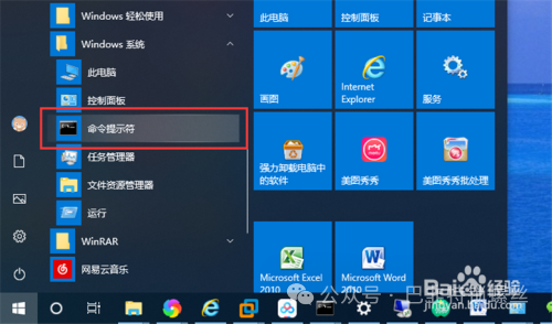 1、点击“开始”—“windows系统”—“命令提示符”,打开命令提示符窗口。