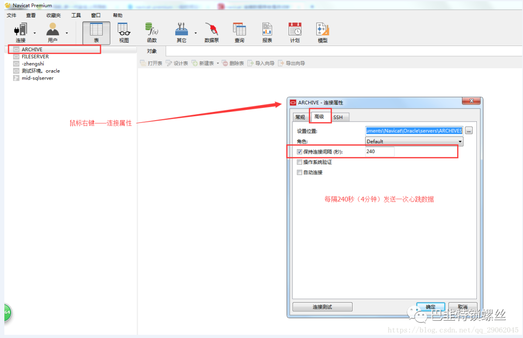 navicat数据库工具,连接数据库时自动断开连接解决办法(设置发送心跳数据)