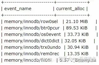 SELECT * FROM sys.memory_global_by_current_bytes WHERE event_name LIKE 'memory/innodb%';
