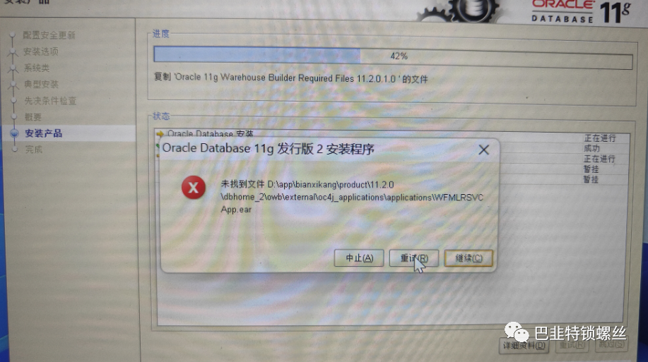 未找到文件 E:\app\xxj\product\11.2.0\dbhome_1\owb\external\oc4j_applications\applications\WFMLRSVCApp.ear,其实oracle安装软件的第二部分就是用来放到第一部分中使用的。