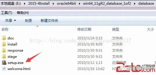 3、在win64_11gR2_database_1of2\database目录下点击setup.exe安装程序,启动Oracle的安装