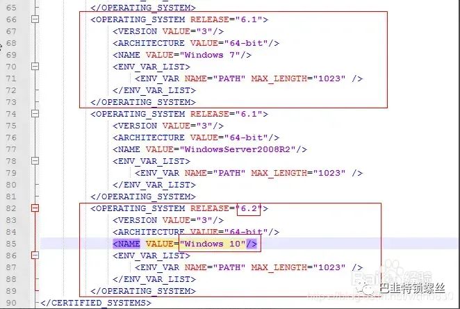 打开【cvu_prereq.xml】文件,找到value=windows 7的OPERATING_SYSTEM段,复制整段,并修改Release = 6.2, value = windows 10;如下: