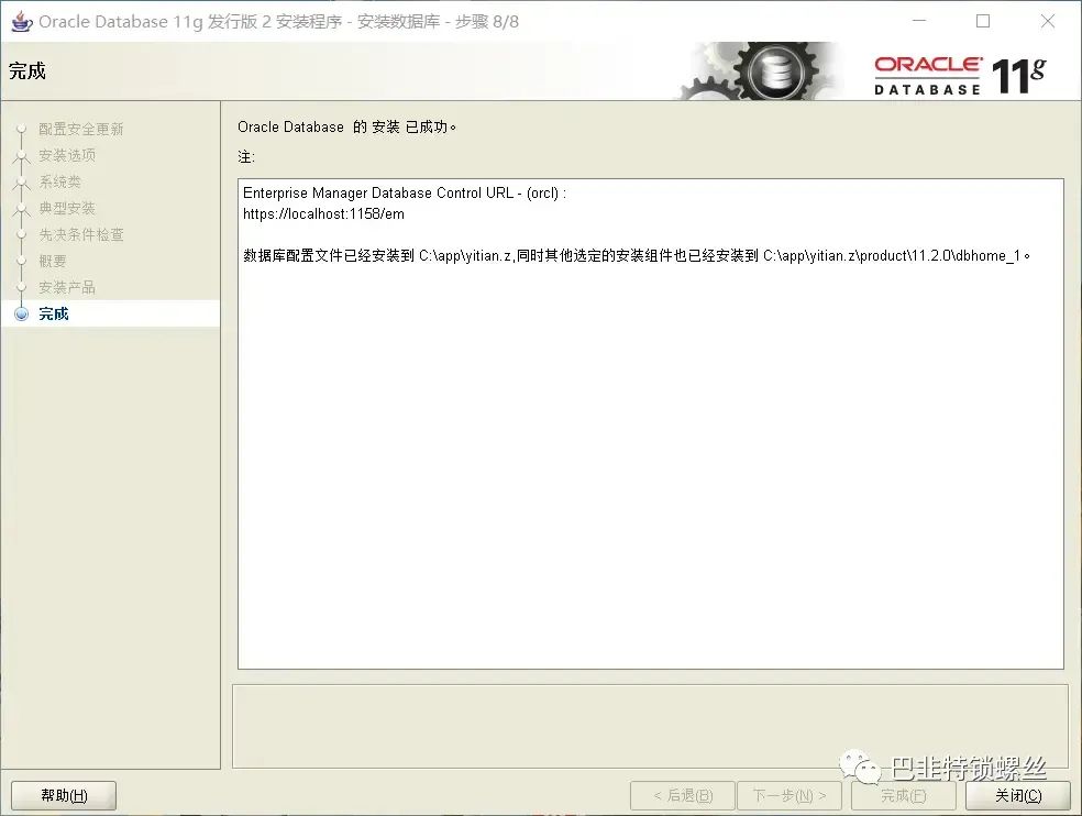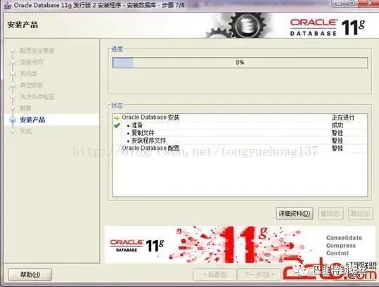 11、如果没什么问题就点击”完成“按钮,进行Oracle的安装和实例拷贝