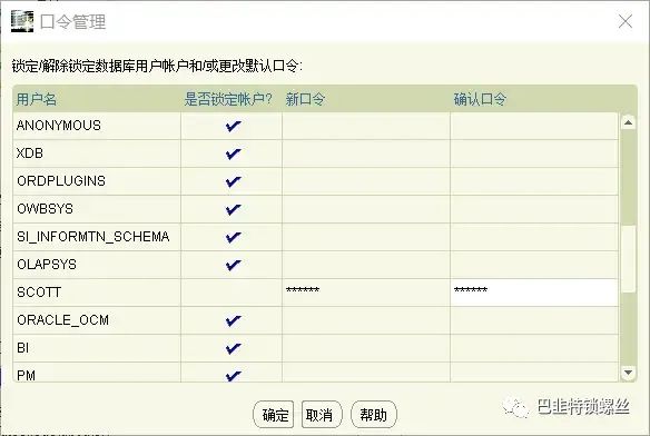 系统的默认可用用户为system和sys,这里可以解除scott用户的锁定状态,并为其设置口令。以便用于数据连接测试。