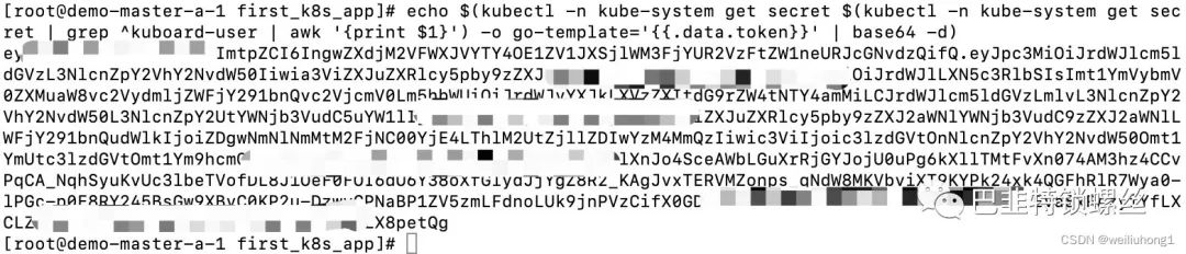 echo $(kubectl -n kube-system get secret $(kubectl -n kube-system get secret | grep ^kuboard-user | awk '{print $1}') -o go-template='{{.data.token}}' | base64 -d)