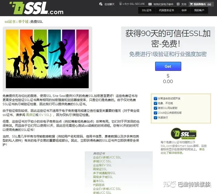 使用SSL Site Seal提供90天的免费SSL证书具有与更高安全性验证SSL证书相同的加密强度和浏览器接受率。