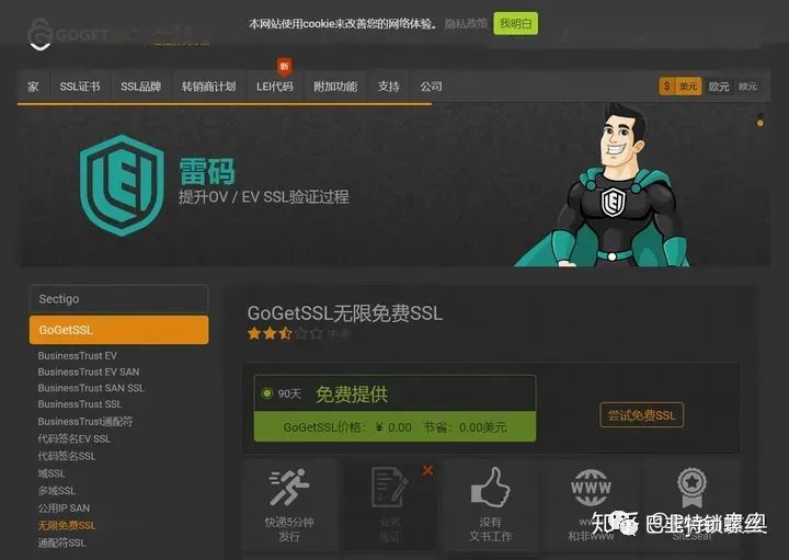 便宜SSL是一家国内的SSL证书提供商,同样也拥有免费证书。而且提供丰富的工具。