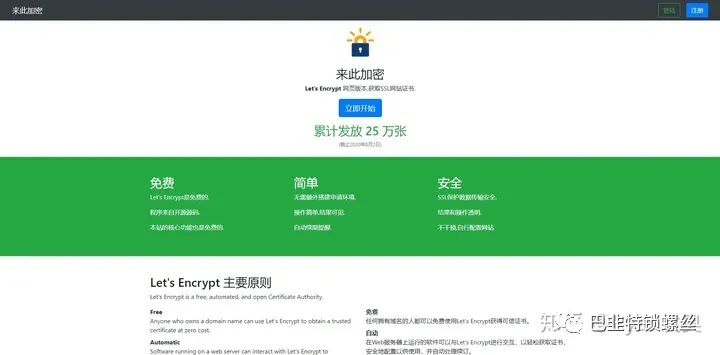 Let’s Encrypt 网页版本,获取SSL网站证书。