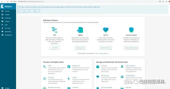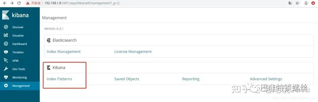 】打开Kibana界面,找到Management菜单,如下图所示: