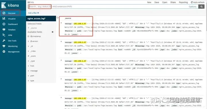 在这篇博文中,我们只是简单的演示了如何部署ELK中的三个组件,和配置了一个简单读取nginx访问日志的示例。