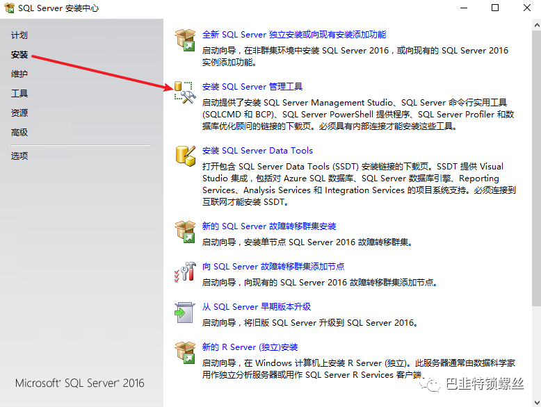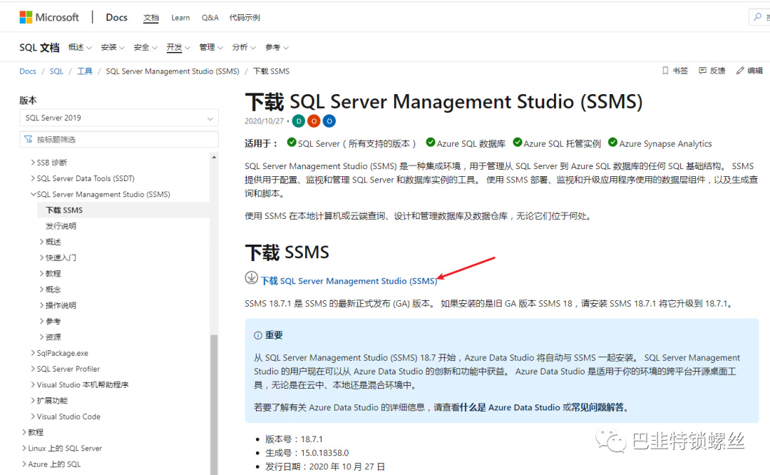 点击安装SqlServer安装工具后会自动跳转至微软官方下载页面,点击链接等待下载安装即可: