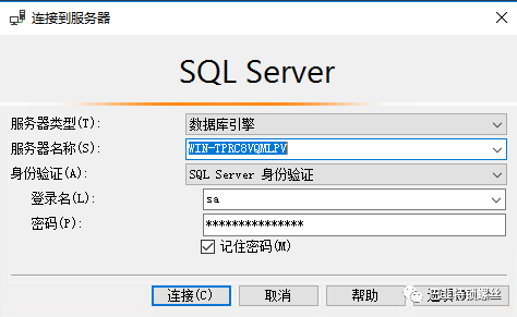 安装完成后,重启服务器后,在开始菜单中找到Microsoft SqlServer tools----Microsoft SqlServer management studio进入SqlServer管理工具中,首次访问时需要进行登录设置,这里我选择的是SqlServer认证方式,用户名、密码为安装数据库时设置的用户名密码: