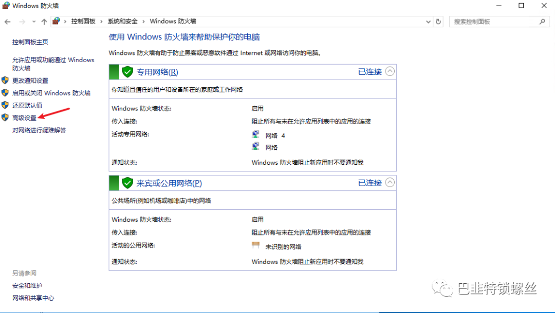 点击进入防火墙高级设置页面:
