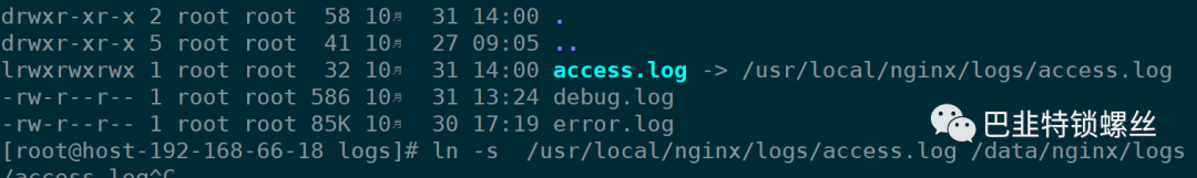 ln -s /usr/local/nginx/logs/access.log /data/nginx/logs/access.log