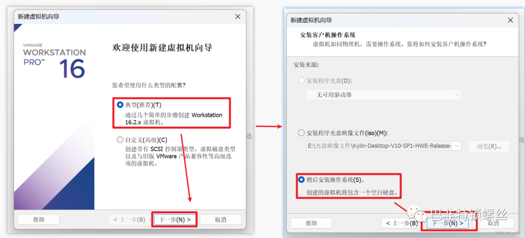 第一步:打开VMware点击左上角文件 → 新建虚拟机 → 典型 → 稍后安装操作系统