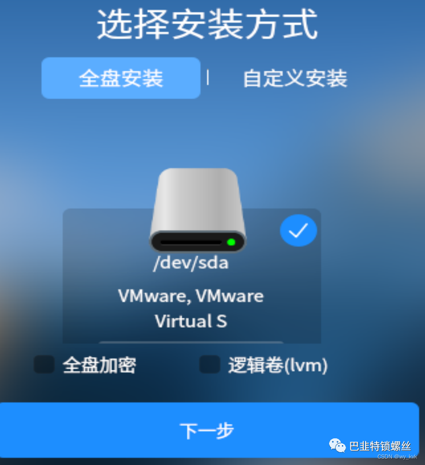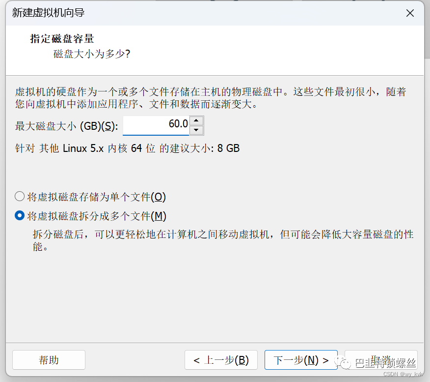 第三步:设置磁盘容量,银河麒麟要求需要容量 >= 50GB