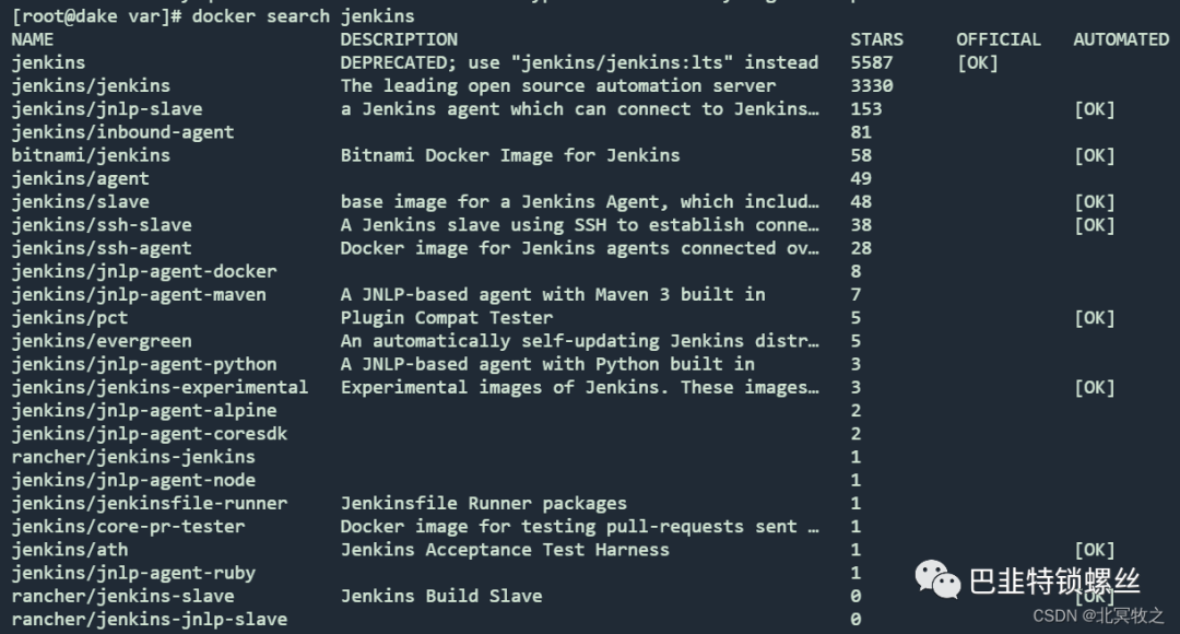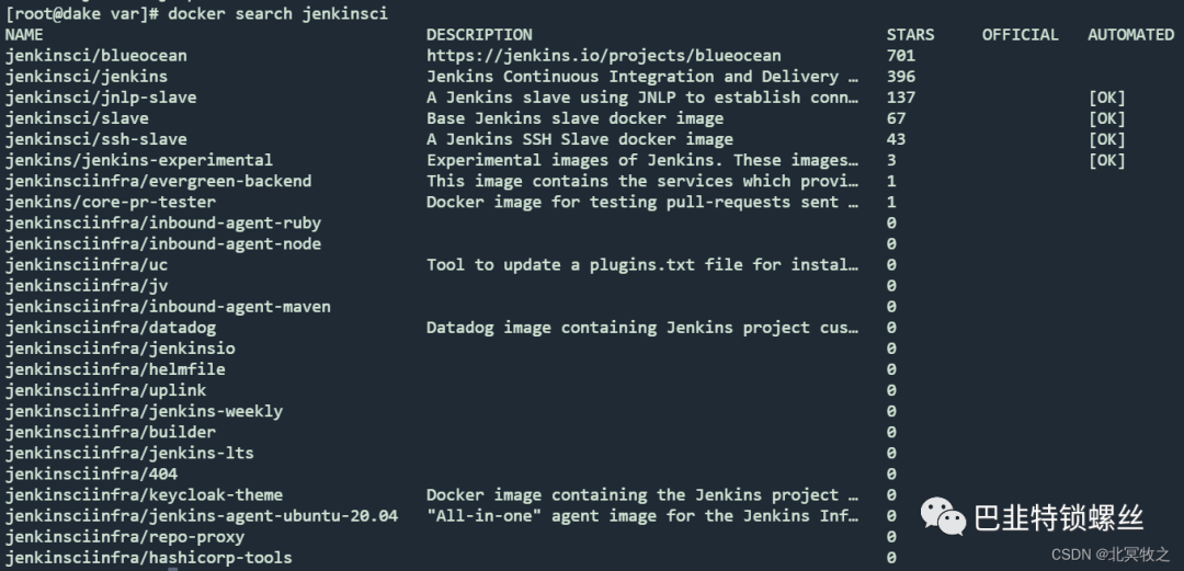 通过上图OFFICIAL列的字段可以看出,我们检索的jenkinsci的容器,都不是官方版本的。
