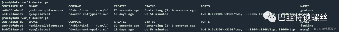 我们采用以上命令创建一个名为jenkins的容器,然后查看容器情况: