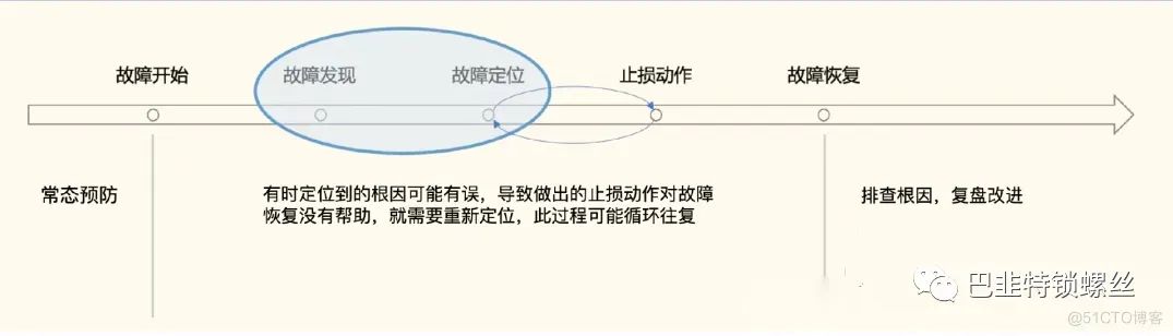 在稳定性保障体系中,核心就是在干一件事,减少故障。我们可以看一下故障的生命周期: