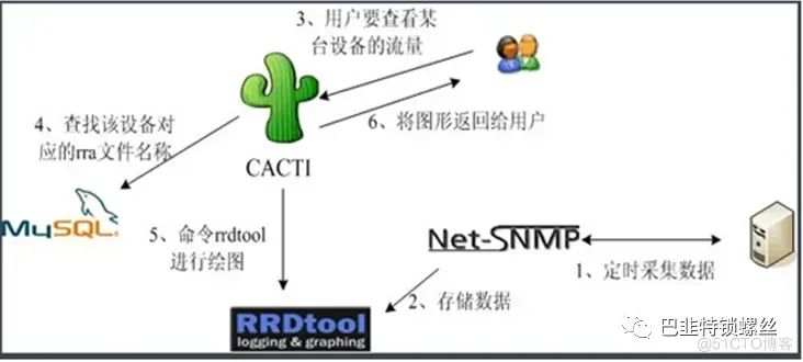 Cacti是一套基于PHP,MySQL,SNMP及RRDTool开发的网络流量监测图形分析工具。简单的说Cacti就是一个PHP程序。它通过使用SNMP协议获取远端网络设备和相关信息(其实就是使用Net-SNMP 软件包的snmpget 和snmpwalk 命令获取)并通过RRDTOOL工具绘图,通过PHP程序展现出来。我们使用它可以展现出监控对象一段时间内的状态或者性能趋势图。