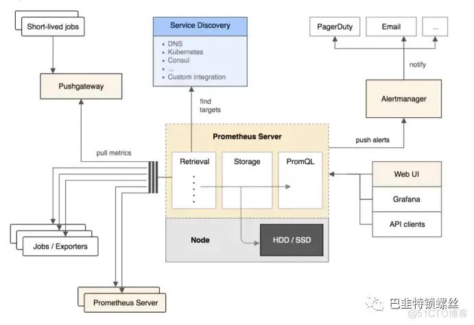 容量问题,Prometheus 默认只提供单机时序库,集群方案需要依赖其他的时序库。