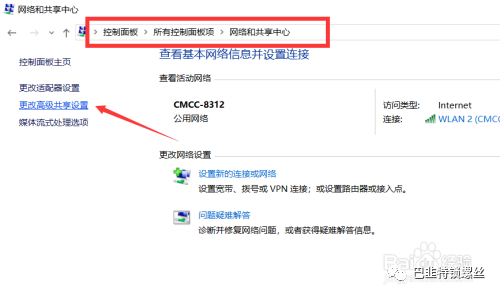 随后在打开的“控制面板”界面中,点击左上角的“打开高级共享设置”按钮进入。