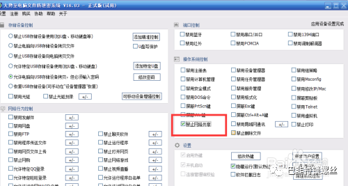 虽然以上方法,可以实现网络共享功能的关闭操作,但是对于网络文件的其它传输方式,则无法从根本上进行管理。对此我们可以借助用于对网络共享进行管理功能的电脑文件管理工具来实现。在其主界面中,直接从“操作系统控制”列表中,勾选“禁止网络共享”选项,这样就一次性实现了电脑网络共享功能。从而保护了电脑中文件的安全性。