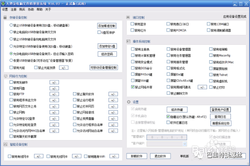 除了可以实现以上功能外,我们还可以针对可移动存储设备访问电脑文件的行为进行控制,可以设置只允许特定U盘读写电脑文件,也可以实现禁用所有USB存储设备使用的功能。除此之外,能够实现电脑上网行为的全面监控功能,可以针对电脑端口进行监控操作,还可以针对操作系统中关键应用及设置进行禁止或允许操作,利用此款工具,可以实现电脑操作行为的全面监控功能,从而保护电脑文件的安全存储。