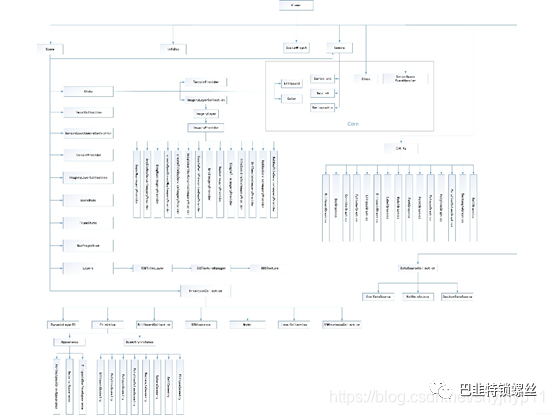 渲染器层:对 WebGL 进行封装,其包括了内置 GLSL 功能、着色器的表示、纹理、渲染状态等;