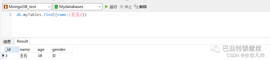 db.collection.find({field:/正则表达式/})或db.集合名称.find({字段:/正则表达式/})