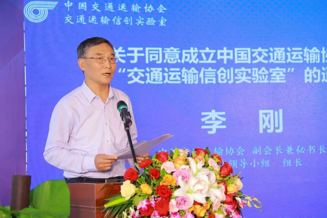 中国交通运输协会副会长兼秘书长李刚宣读中国交通运输协会交通运输实验室批复成立通知,协会到场领导共同为交通运输信创实验室揭牌。