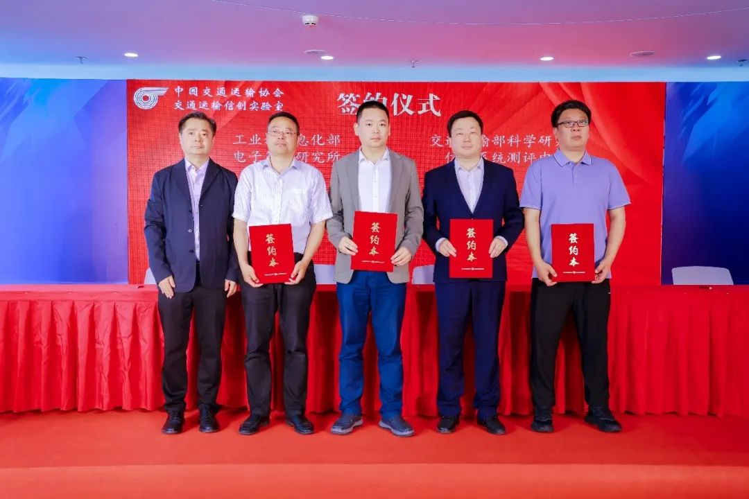 交通运输信创实验室副主任樊杰、徐淑娜代表实验室与中铁信息工程集团有限公司、中国交通信息科技集团有限公司、首都机场集团科技管理有限公司3家行业用户单位,工业和信息化部第五电子研究所、交通运输部科学研究院信息系统测评中心、中国船级社信息开发咨询中心、联通数字科技有限公司4家适配中心以及龙芯中科技术股份有限公司、海光信息技术股份有限公司、浪潮计算机科技有限公司、神州数码信息服务集团股份有限公司等13家交通信创科技企业签订战略合作协议,以交通信创为中心,共同推进创新发展研究,联合开展第三方服务,积极推动标准规范研制,推广展示相关科技成果,共同推动交通运输信创工作发展。