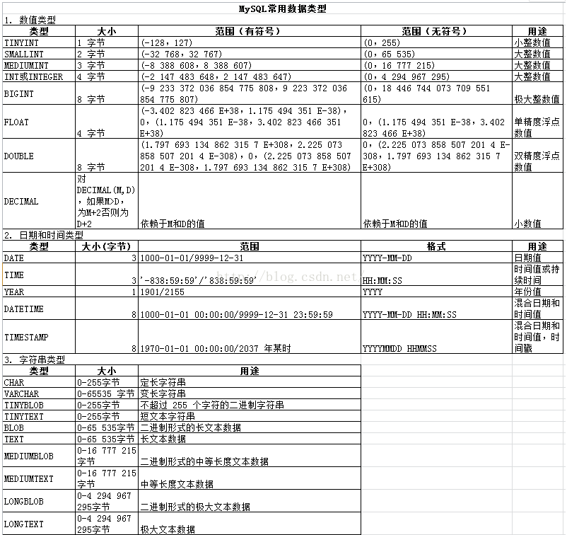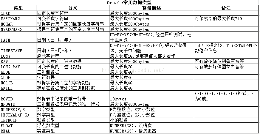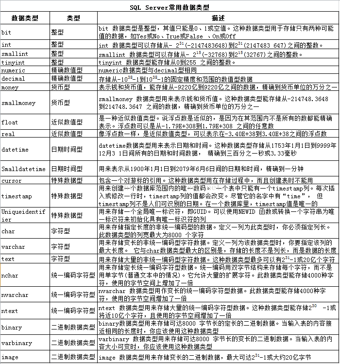 不管何种数据库,常用数据类型无外乎数值型、字符型、日期时间型。下文将列出常见数据库的各种常用数据类型,包含MySQL、Oracle、SQL Server、PostgreSQL、Sybase。