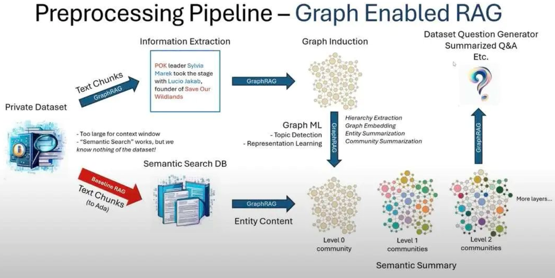 7月2日,微软开源了GraphRAG,一种基于图的检索增强生成(RAG) 方法,可以对私有或以前未见过的数据集进行问答(开源地址:https://github.com/microsoft/graphrag)。通过 LLM 构建知识图谱结合图机器学习,GraphRAG 极大增强 LLM 在处理私有数据时的性能,同时具备连点成线的跨大型数据集的复杂语义问题推理能力。普通 RAG 技术在私有数据,如企业的专有研究、商业文档表现非常差,而 GraphRAG 则基于前置的知识图谱、社区分层和语义总结以及图机器学习技术可以大幅度提供此类场景的性能。据微软在其博客上介绍,他们在大规模播客以及新闻数据集上进行了测试,在全面性、多样性、赋权性方面,结果显示 GraphRAG 都优于朴素 RAG(70~80% 获胜率)。