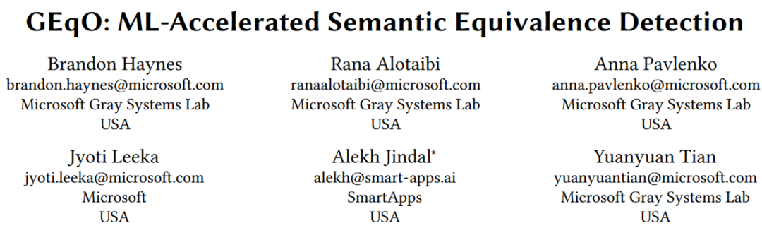 本周推荐的SIGMOD 2024上的论文:GEqO: ML-Accelerated Semantic Equivalence Detection,该文提出了一个名为GEqO的基于机器学习的框架,能够在大规模分析引擎中高效检测语义等价计算,从而提高集群资源利用率和减少作业执行时间。作者来自Microsoft Gray Systems Lab,Microsoft和SmartApps。