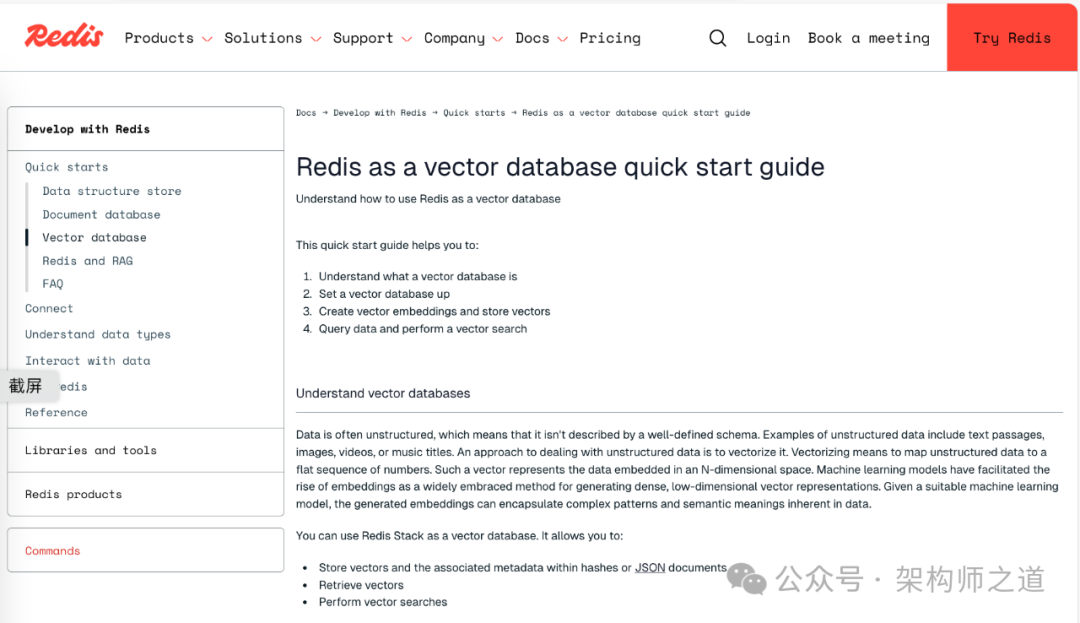 因此,在追求高效、可扩展和响应迅速的机器学习系统中,Redis 已成为一个不可或缺的工具。接下来,我们将深入探讨 Redis 在向量数据存储和检索方面的应用,以及如何利用其特性来优化机器学习应用的性能。