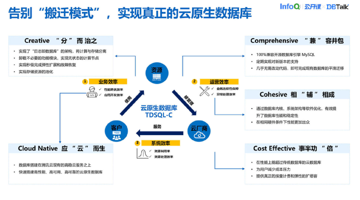 第二,数据库资源被云厂商管理,云原生同架构可以提高运营效率。云原生架构使用算存分离的设计减少了算存资源的耦合,减少了资源配比的限制,用户就能获得更多资源红利。