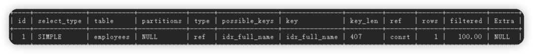 如上图所示,执行计划显示我们成功利用了 idx_full_name